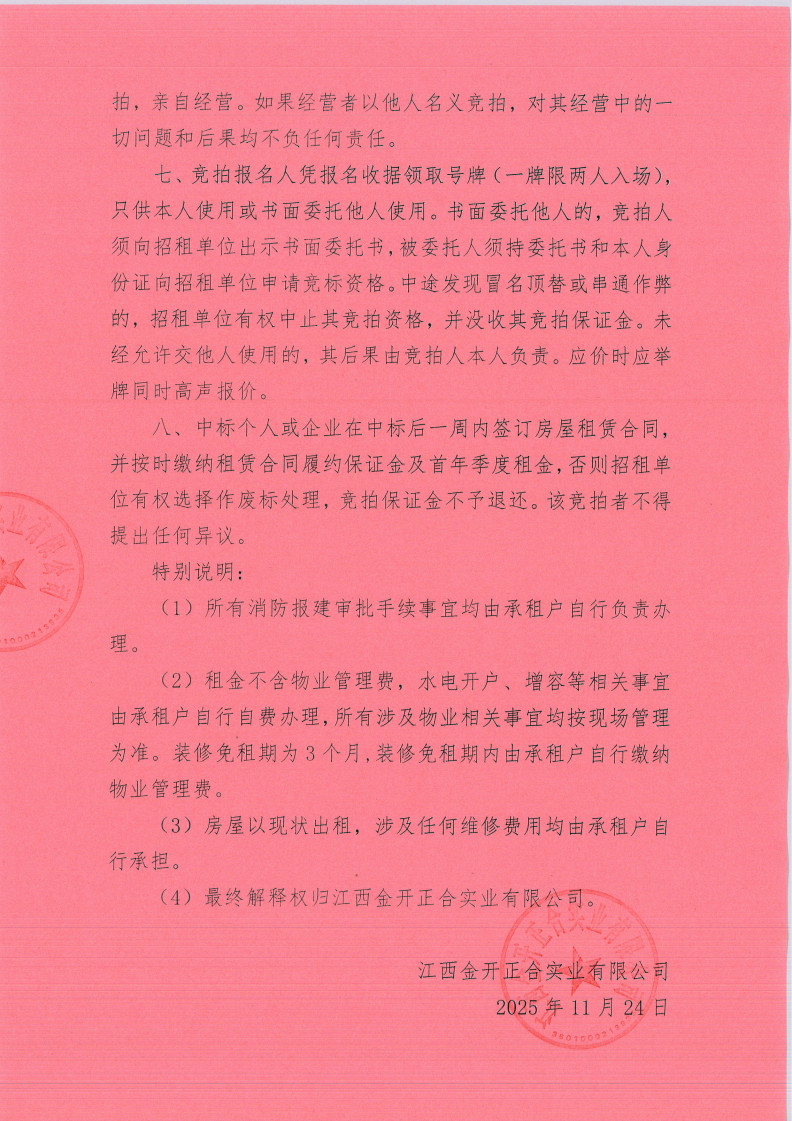 江西金开正合实业有限公司儒乐星镇杏茂商业街2号地块3#商铺租赁竞拍公告