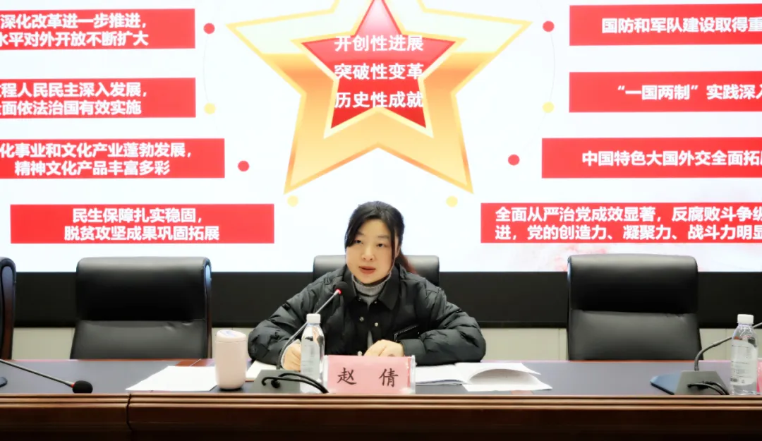 报告会上,赵倩以《深入学习贯彻党的二十届四中全会精神 奋力开创中国式现代化新局面》为题,结合南昌经开区发展实际,从深刻认识党的二十届四中全会的重大意义、准确把握“十五五”时期在基本实现社会主义现代化进程中的重要地位、深刻领会“十五五”时期经济社会发展的指导方针和主要目标、全面理解“十五五”时期经济社会发展的战略任务和重大举措、坚持和加强党的全面领导,凝聚起推进中国式现代化的磅礴力量五个方面,对全会精神进行详细解读、全面宣讲和深入阐释。与会同志一致表示,此次宣讲既有理论高度,又有实践深度,对于我们准确理解和把握全会精神,具有非常重要的指导意义。