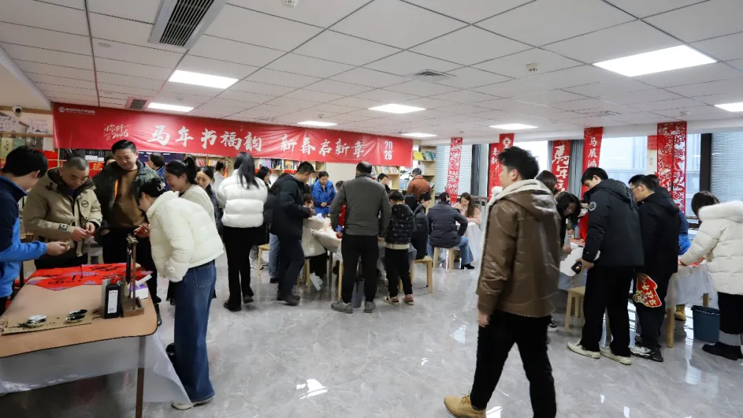活动现场准备了齐全的纸、墨、笔、砚等物料,书法爱好者现场挥毫泼墨,笔力遒劲、气韵生动,一副副寓意吉祥的春联、一个个饱满喜庆的福字接连呈现,引得大家驻足欣赏、有序领取。不少同事亲自提笔上阵,认真临摹创作,在一笔一画中写下对新年的美好期盼;传统拓印体验区同样热闹非凡,大家亲手拓印福字与红包,将这份承载年味与祝福的作品带回家。