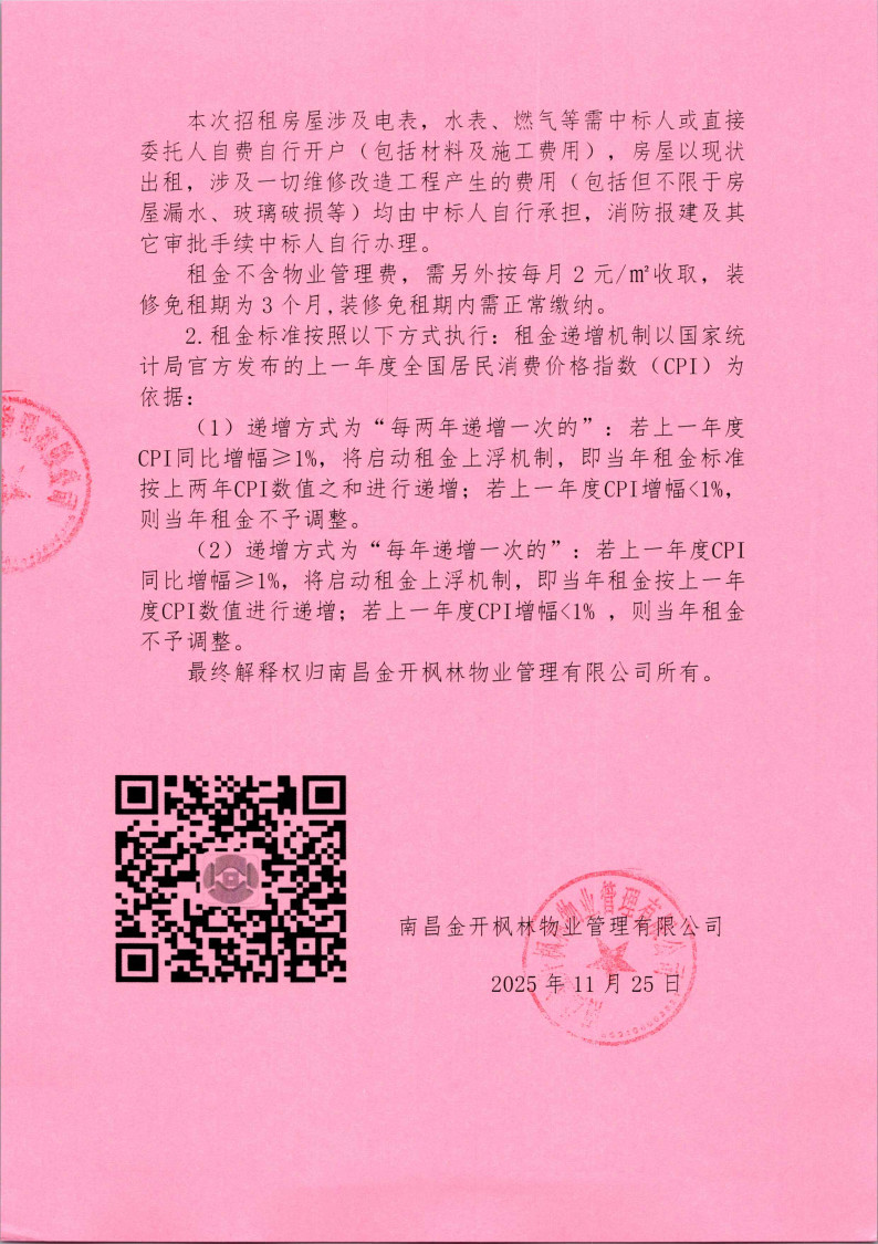 南昌金开枫林物业管理有限公司五联花园安置房小区房屋租赁竞拍公告
