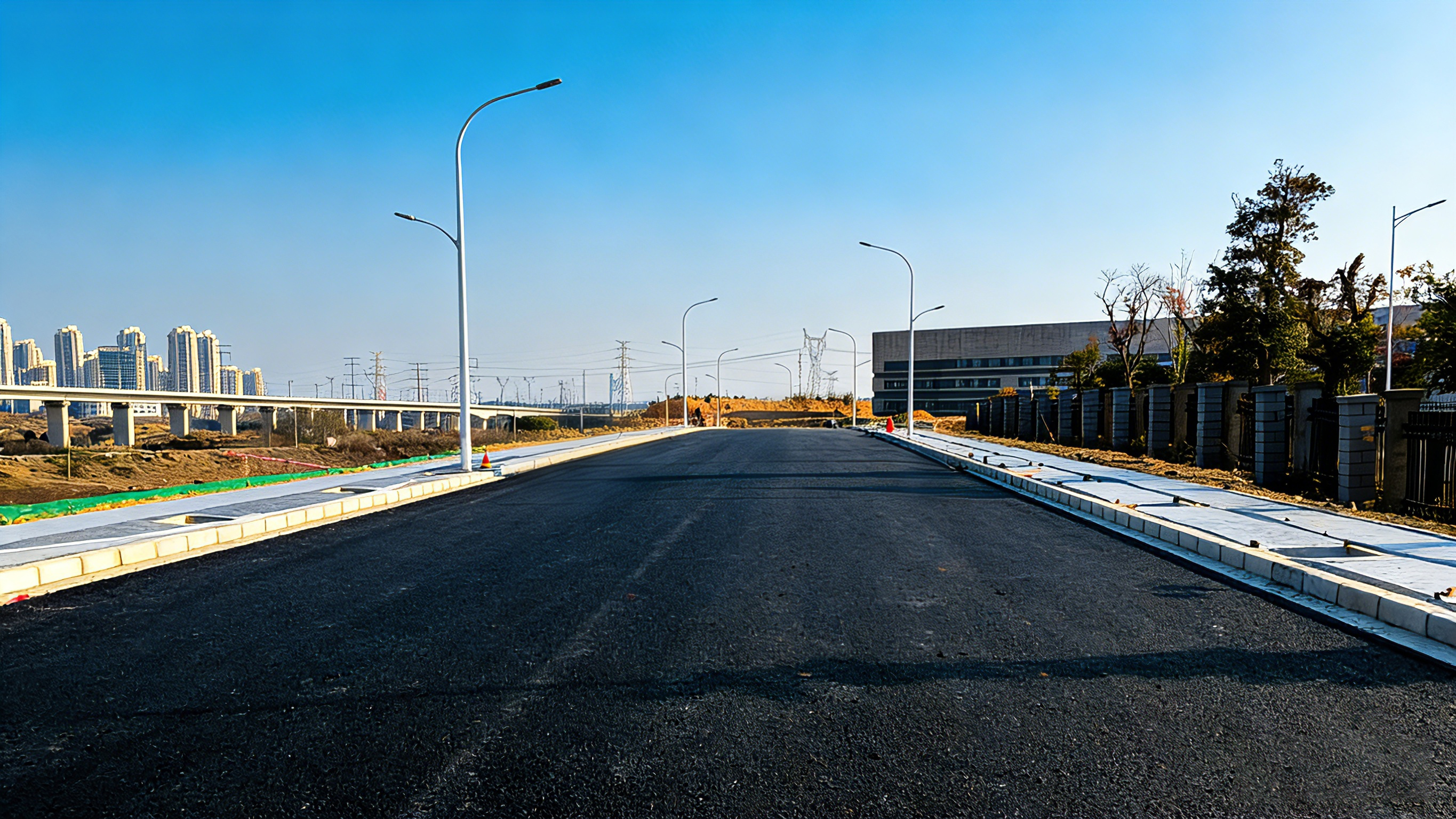 主路沥青摊铺与交通标识标线工程也已全部结束。