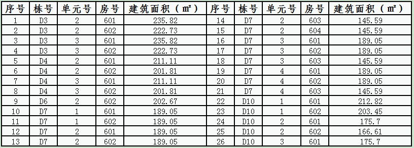 4#倒班楼:2层988.76㎡、3层988.76㎡、4层988.76㎡、5层935.6㎡、6层988.76㎡、7层988.76㎡、8层988.76㎡、9层988.76㎡、10层988.76㎡、11层988.76㎡、12层988.76㎡、13层988.76㎡、14层988.76㎡、15层988.76㎡。