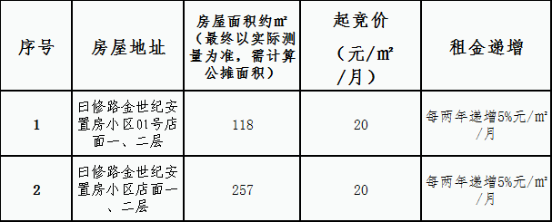 三、本次竞拍只报起竞价,房屋每间租金起竞价为: