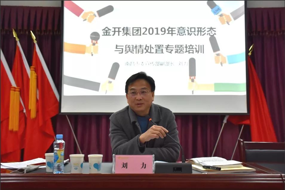 为提升新形势下意识形态及舆情处置工作水平,进一步加强对意识形态工作的认识,提升舆情分析、收集、引导及应对能力,1月11日上午,金开球友会手机版举办意识形态工作及舆情处置专题培训,市委宣传部副部长刘力受邀到场,为干部职工上了一堂精彩的宣传理论实践课。球友会手机版党委副书记、副总经理熊爱华主持,球友会手机版领导方义发、边文彬、熊永赋及球友会手机版所属各公司工程、行政、宣传相关人员90余人参加。