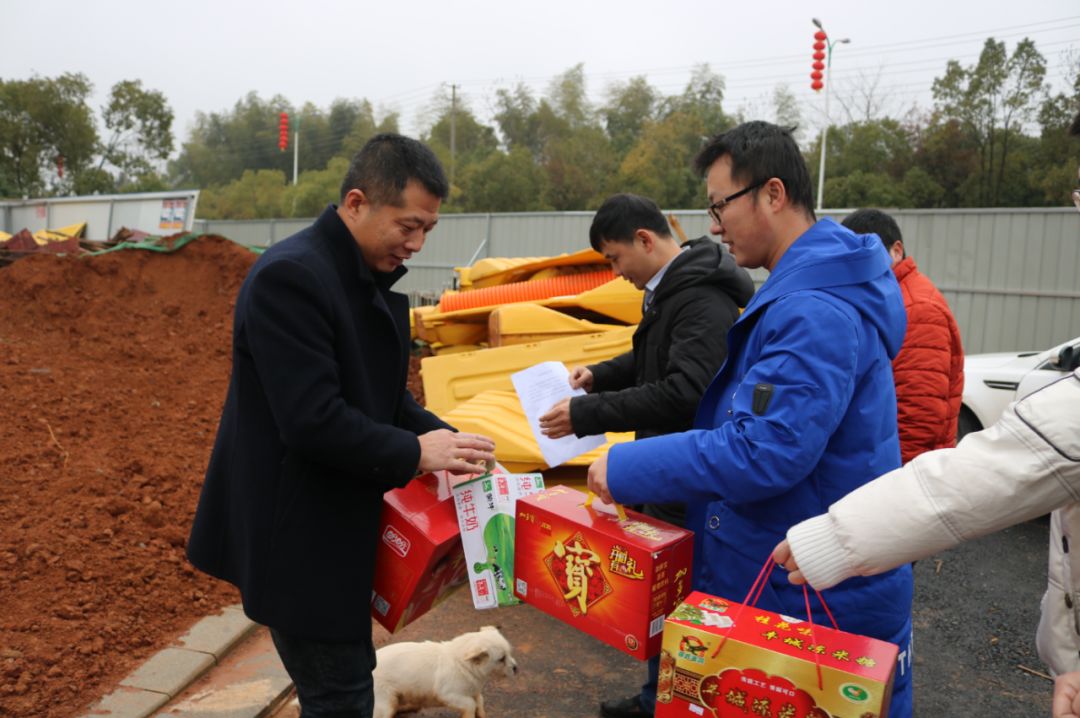 2月12日,金开球友会手机版下属金力公司总经理助理曾俊带队前往中医药科创城会展交易中心、标准厂房、公共研发及公共服务中心及扁鹊路四个项目点慰问各参建单位负责人及正在值班的工作人员,对他们一年以来的辛勤劳动给予鼓励并为他们送去节日慰问品。