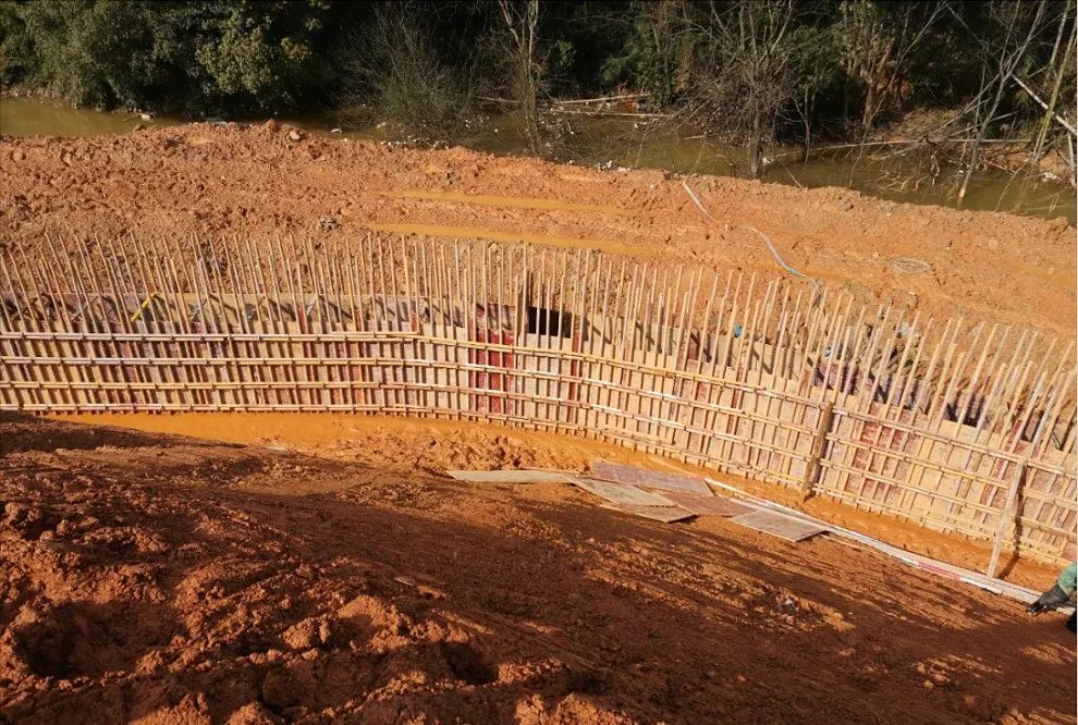目前,古桥挡土墙、护坡基础混凝土浇灌已完成,护坡正在制模中,施工方表示待天气晴好,条件允许的情况下,施工方将做好排水工作,并将护坡工程一次性施工到位。