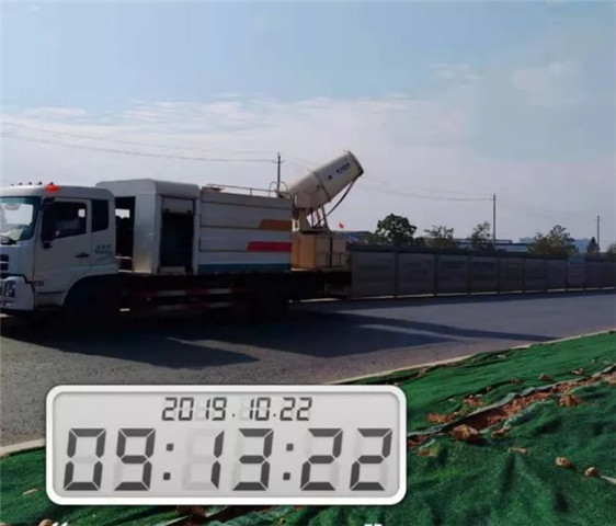 开启雾炮机降尘,清扫施工用车通道,保持施工现场干净整洁
