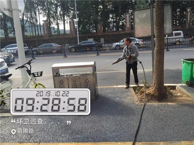 1、海棠路全线洒水降尘、菊圃路路面清洗、海棠路青岚嘉园两侧非机动车道路面清洗;