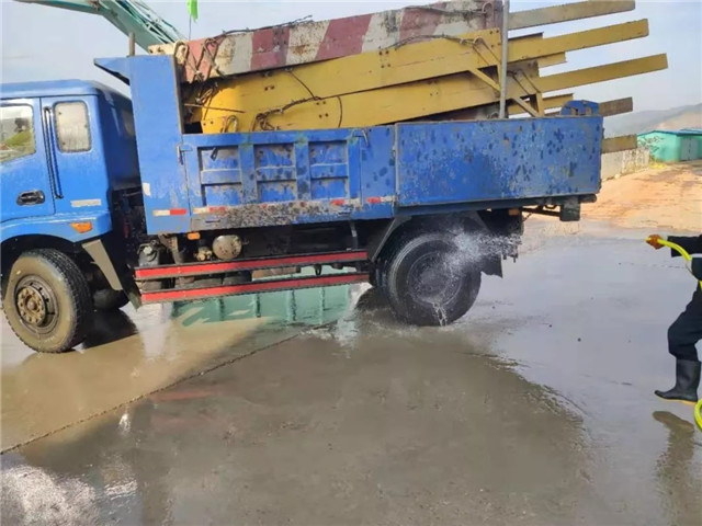 4、双港安置房开启雾炮机及喷淋装置,安排洒水车对现场内路面及大门外路面冲洗;