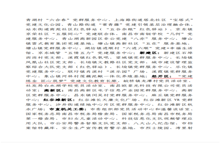 6月以来,为使该长廊进一步巩固党性教育基地建设成果,球友会手机版党委积极组织开展全市党性教育重点基地申报工作,并全力配合区组社部、市委组织部验收复核审核工作。其中,6月12日,邀请市委组织部组织三处处长于韧、区组社部组织处处长魏玲来球友会手机版查看指导党建文化长廊建设情况,并对长廊有关装饰、内容进行了整改完善,最终成功获评为南昌市党性教育重点基地。