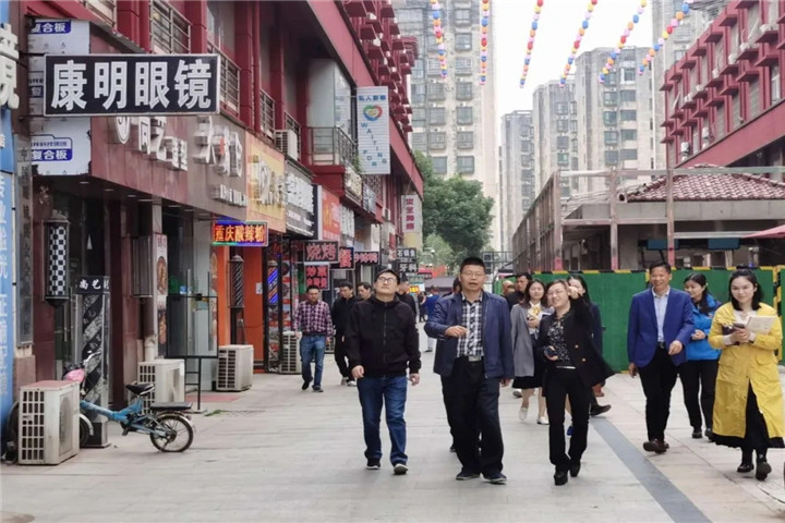 为贯彻落实《现代服务业高质量发展十大提升行动实施方案》,加快推进我区现代服务业优结构、提品质、扩规模,10月29日,市商务局副局长石浩一行对经开区紫荆路步行街夜市项目进行实地调研,金开球友会手机版纪委书记方义发,经发局副局长秦娟及金匠置业总经理周晔陪同调研。