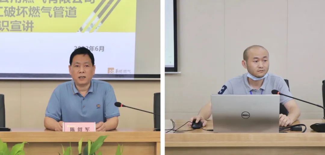 此次培训邀请到赣江新区市政公用燃气公司总经理陈绍军,以及安全生产管理相关人员,燃气公司安全运营部副经理龚龙龙担任讲师,课程分为燃气管道破坏事故案例、燃气知识及相关法律条例、施工工地配合工作三个学习阶段,龚龙龙以真实案例为切入点,结合自身多年的燃气管道安全管理经验,针对课件内容展开了深入的讲解,陈绍军总经理通过亲身经历的几个安全事件进行了剖析。
