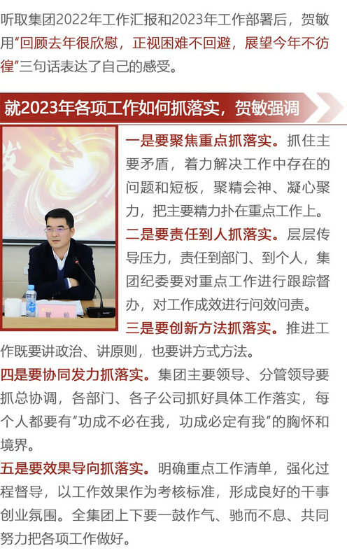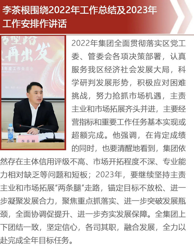 会上,球友会手机版财务部(融资部)、工程技术部及各子公司作了述职报告,总结了2022年工作,分析了工作中存在的问题和困难,重点谋划了2023年工作。