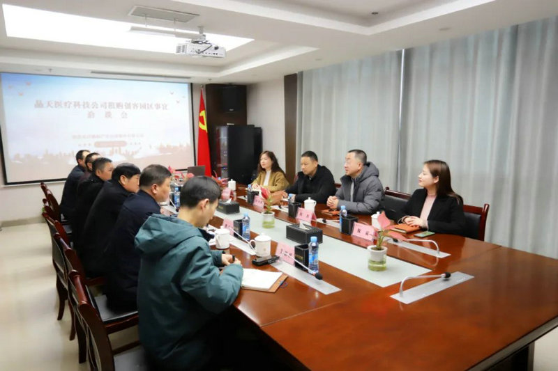 洽谈会上,何川简要介绍了晶天医疗科技有限公司基本情况、主营领域、产业板块、特色优势及重大项目布局等情况,双方围绕租购创客园区厂房事宜进行了深入交流和洽谈,并达成共识。