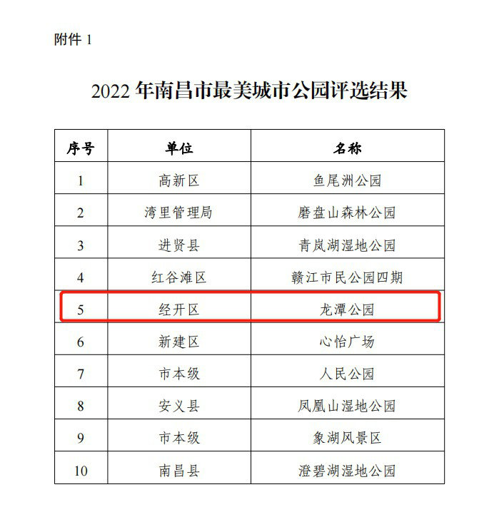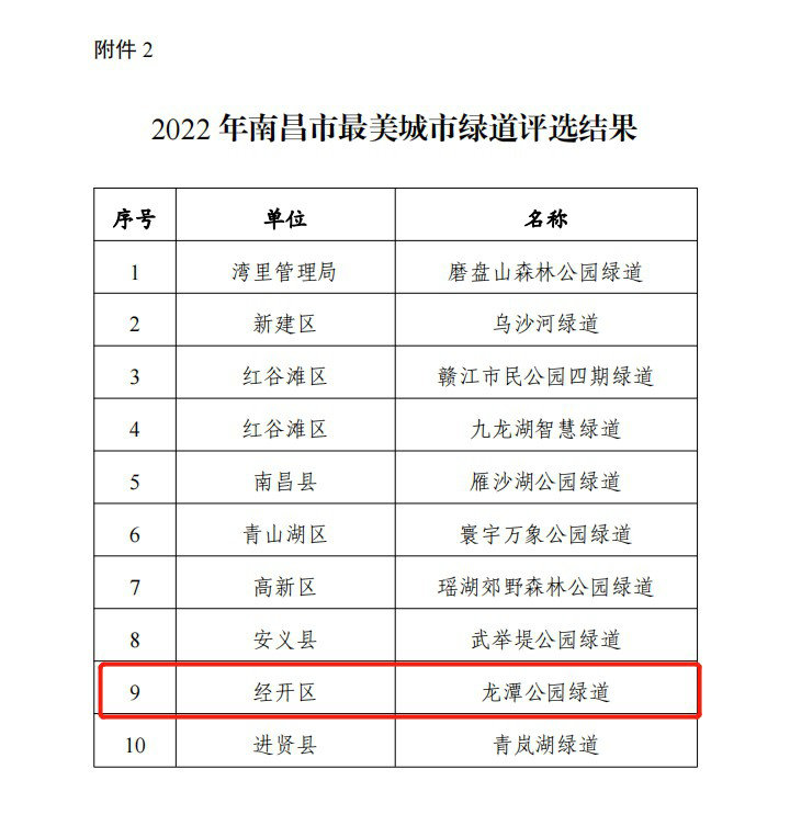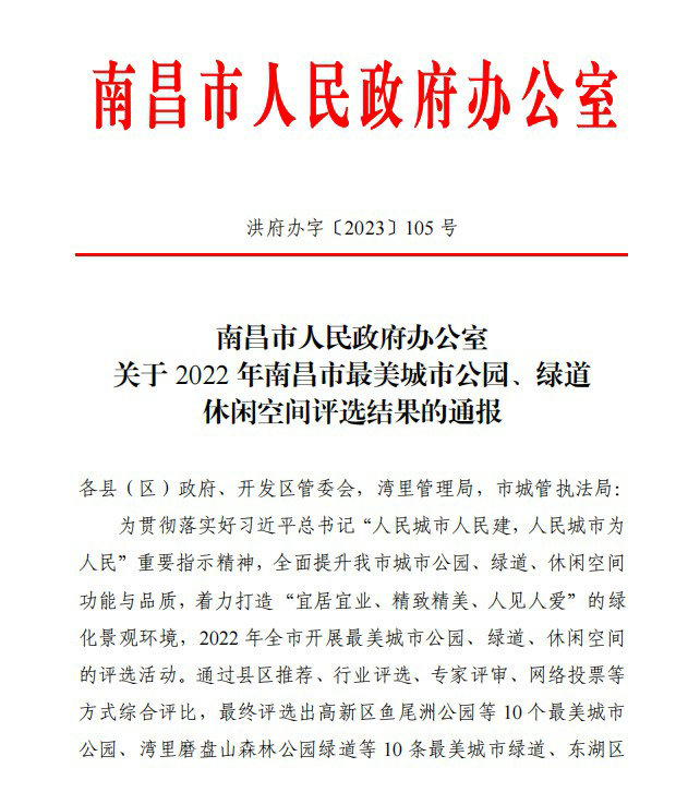2月28日,南昌市人民政府办公室发布《关于2022年南昌市最美城市公园、绿道休闲空间评选结果的通报》,其中由南昌金开球友会手机版建设的龙潭公园(南昌经开区龙潭水渠景观提升改造工程)荣获“最美公园”“最美绿道”荣誉称号!