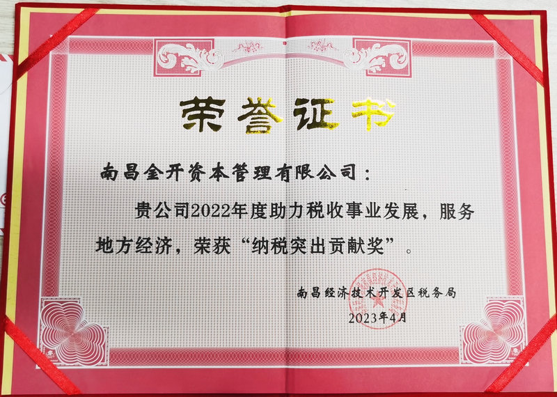 金开资本管理有限公司、南昌金开正源房地产开发有限公司荣获“纳税突出贡献奖”。