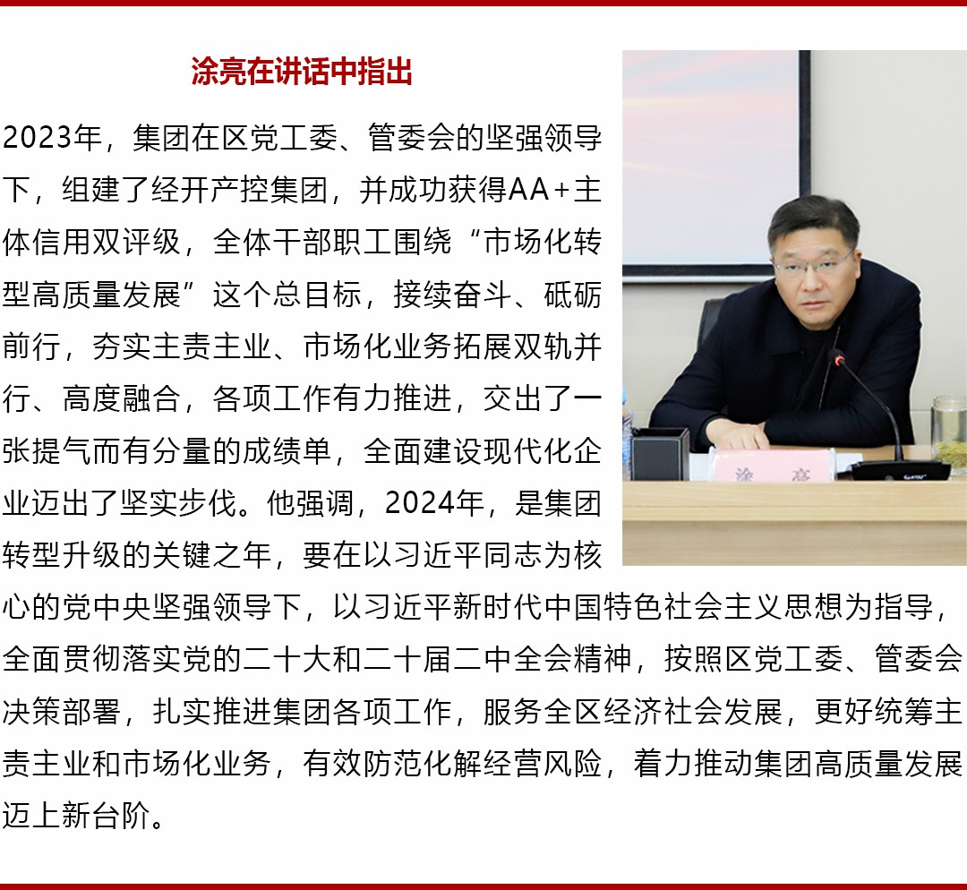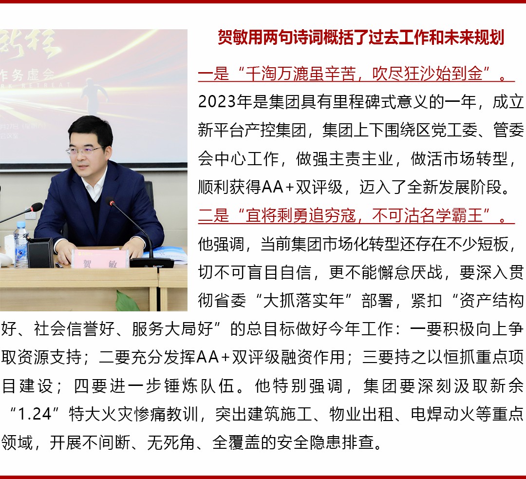 1月27日上午,南昌经开产控球友会手机版召开2024年度工作务虚会,回顾总结2023年的工作,展望谋划2024年的工作。区党工委委员、管委会副主任贺敏,球友会手机版党委书记、董事长涂亮出席会议并讲话。球友会手机版党委副书记、总经理李茶根主持会议并作汇报讲话。球友会手机版领导班子成员黄新强、胡许亮、彭驰、万居易、罗进群,球友会手机版工会主席袁扣华,球友会手机版副部长及以上人员、各子公司部门负责人及以上人员参加会议。