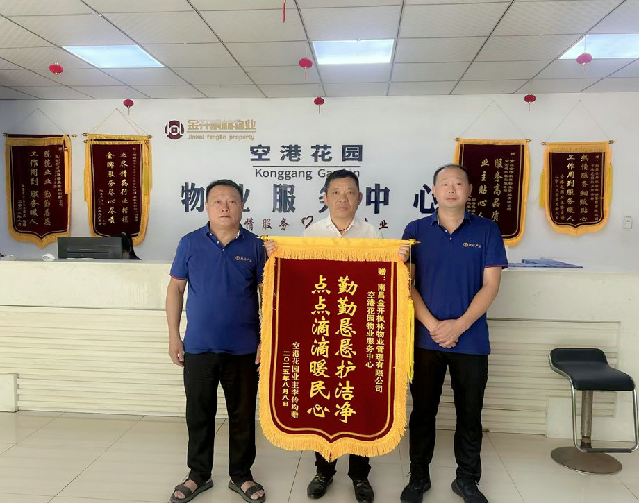 近日,江西省博库人才服务有限公司将一面绣着"尽职尽责好管家 服务周到暖人心"的锦旗送到赤府花园二期物业服务中心。原来,同栋楼其他业主的排水问题导致博库公司办公区域出现渗漏,严重影响企业办公。枫林物业公司物业工程团队接报后立即响应,经过多次现场勘查和耐心协调,最终促成业主完成整改,彻底解决了这一困扰企业的难题。"从报修到解决,物业团队展现出的专业素养和负责态度让我们深受感动。"博库公司负责人说道。