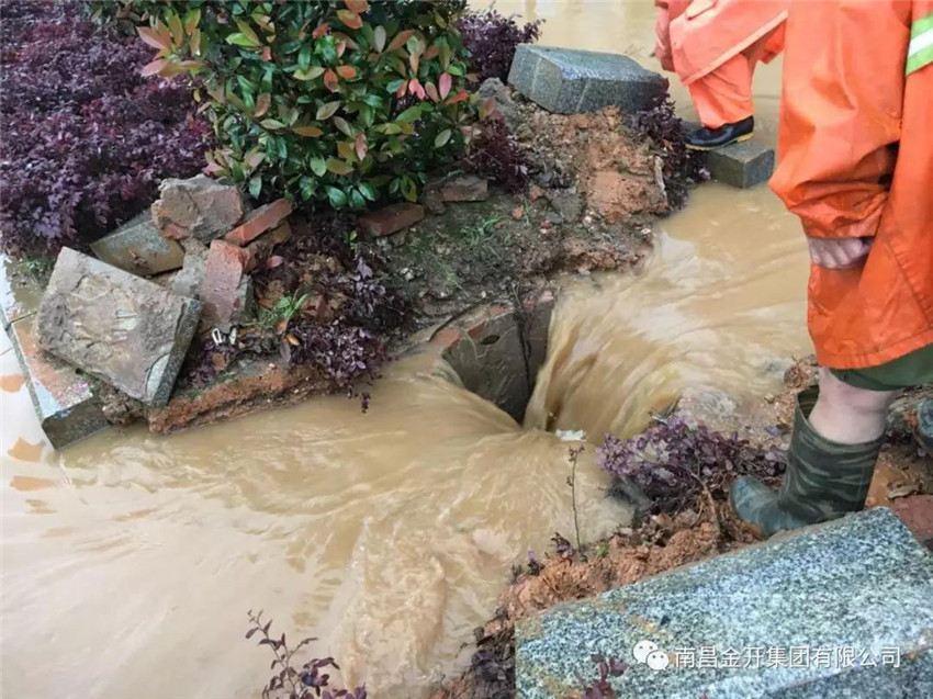 5月1日,南昌市突降暴雨,由于雨量大且急,导致区内各主干道排水压力剧增,多处道路出现积水、井盖冒水等现象,其中玉屏东大街、双港西路积水较为严重。为了保障行人、车辆出行安全,金开球友会手机版下属管护公司立即启动防汛应急预案,开展防汛排涝工作。
