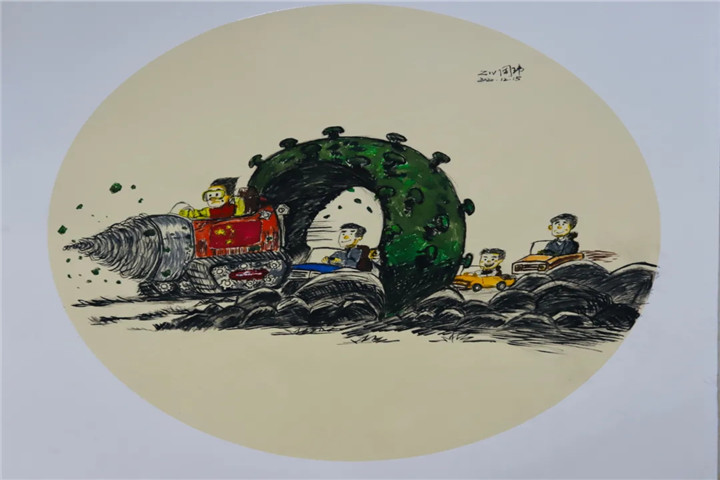 最后,机关党支部作品敖玥《战役》、周玮《突出重围》和建总党支部陈艺娴作品《金花绽开》荣获前三名。