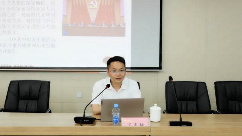 当天下午,市委党校教师、党史学习教育中共南昌市委宣讲团成员丁志猛以《学习新思想 践行两个维护》为主题,从深刻认识“两个确立”的决定性意义,坚决做到“两个维护”;牢牢掌握习近平新时代中国特色社会主义思想的科学体系;坚定不移用新思想武装头脑、指导实践、推动工作三个方面,深入讲解了主题教育的历史背景、本质内涵、价值意义、践行路径等内容,有力推动了球友会手机版党员干部职工全面学习领会主题教育的真理力量和实践伟力。
