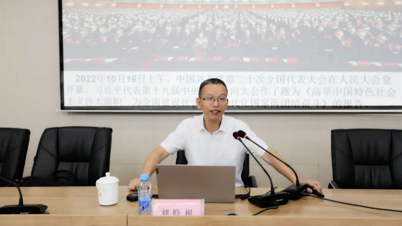 6月30日,江西财经大学金牌教师,马克思主义学院副院长、教授刘晓根第二次来到球友会手机版,为党员干部职工讲授了主题为《向着伟大复兴阔步前进——学习贯彻党的二十大精神》专题授课。他从过去五年工作和新时代十年伟大变革、开辟马克思主义中国化时代化新境界、新时代新征程中国共产党的使命任务、全面推进中华民族伟大复兴战略擘画、深入推进新时代党的建设新的伟大工程五个方面,深入讲解了党的二十大的主要内涵和重大理论观点,带领与会人员重温了党的二十大精神,进一步增强了党员干部职工学习贯彻落实党的二十大精神的政治自觉和行动自觉。